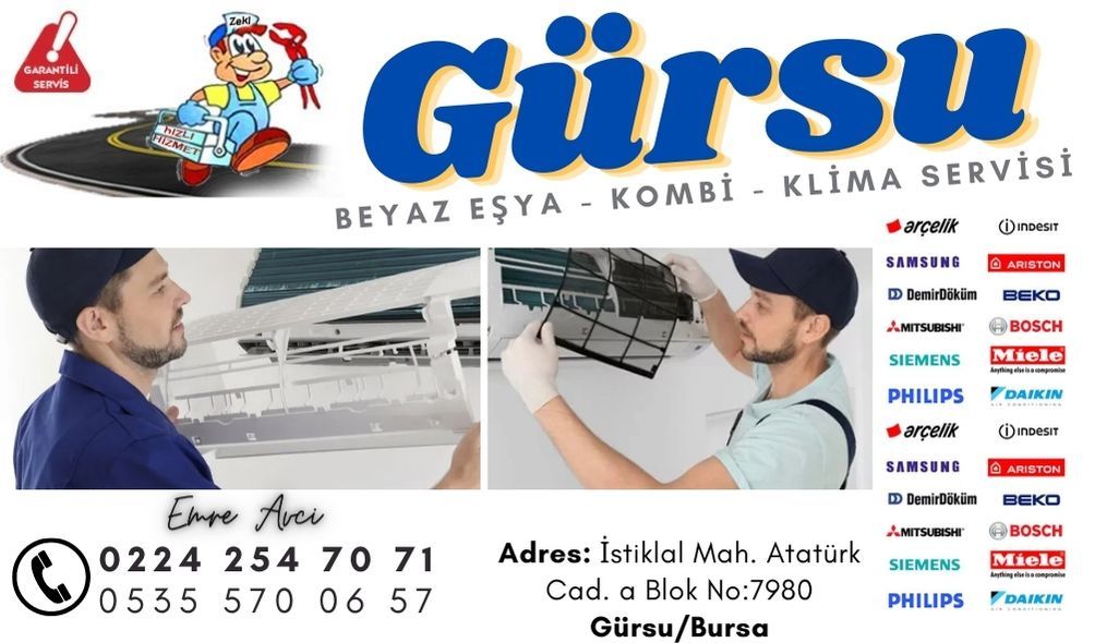 Gürsu Beyaz Eşya Servisi, haftanın 7 günü 24 saat hizmet politikası ile Bursa ve ilçelerine tüm marka beyaz eşyalara Servis hizmeti vermektedir. Bursa her bölgesinde Gürsu ve çevre mahallelerinde beyaz eşya servisimiz bulunmaktadır.